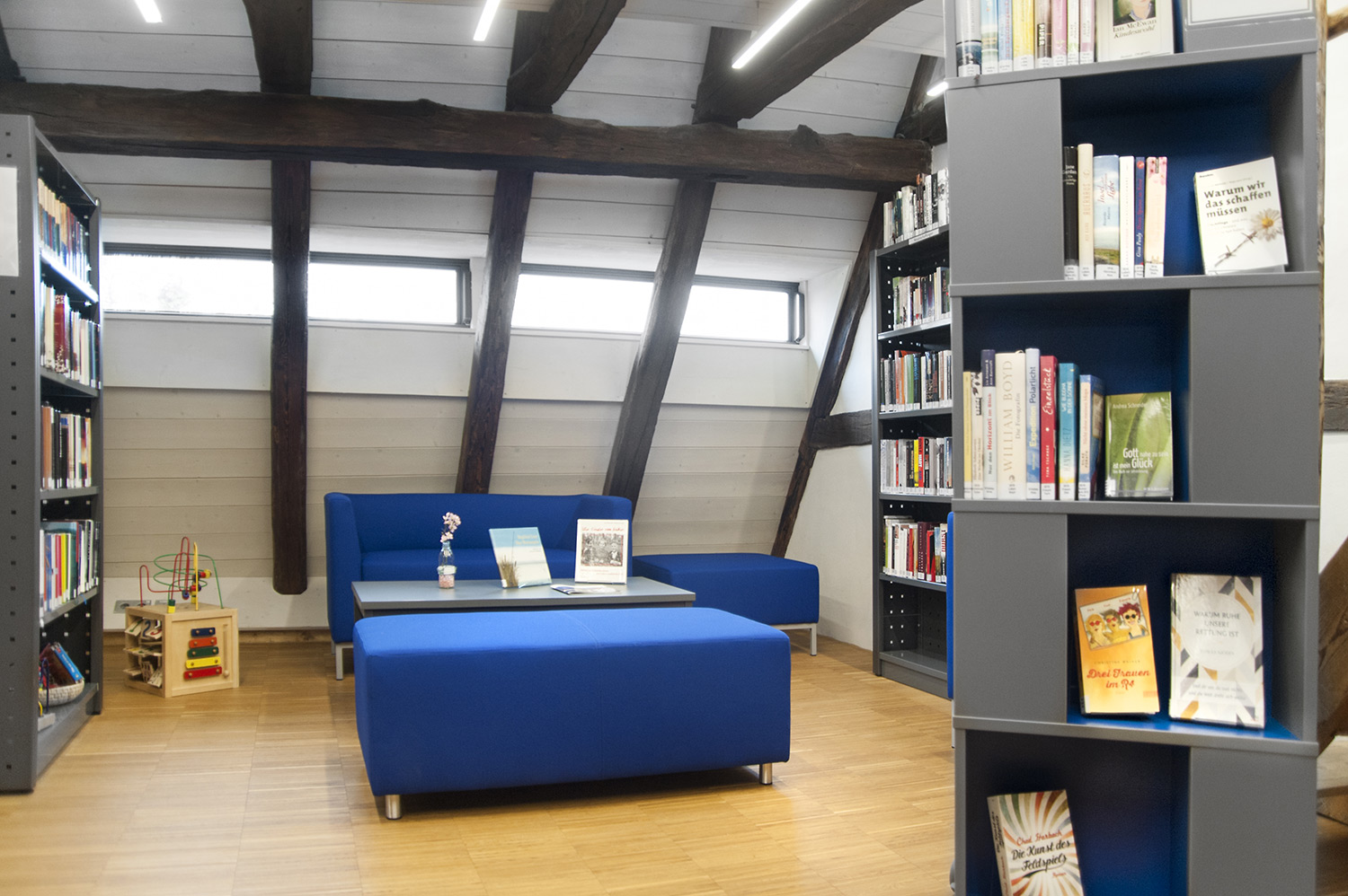 I 2015 flyttede biblioteket i Ehningen fra den tidligere lokation i skolen til et renoveret bindingsværkshus med et moderne præg.