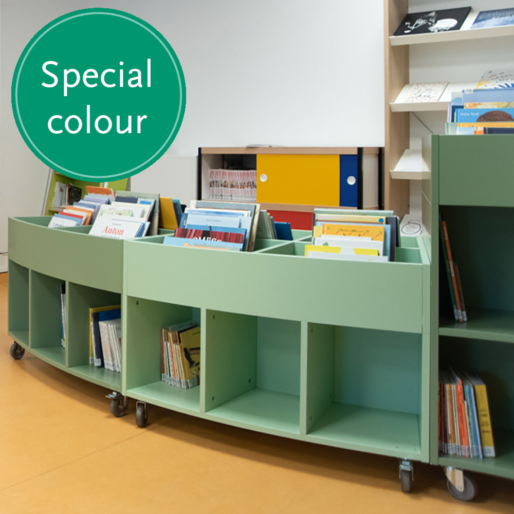 Sara er en funktionel og moderne krybbe, der præsenterer og opbevarer alle typer af bøger og media på en simpel og visuel måde. Afhængig af højde kan krybben bruges af både børn og voksne, og passer ind i alle områder i biblioteket.