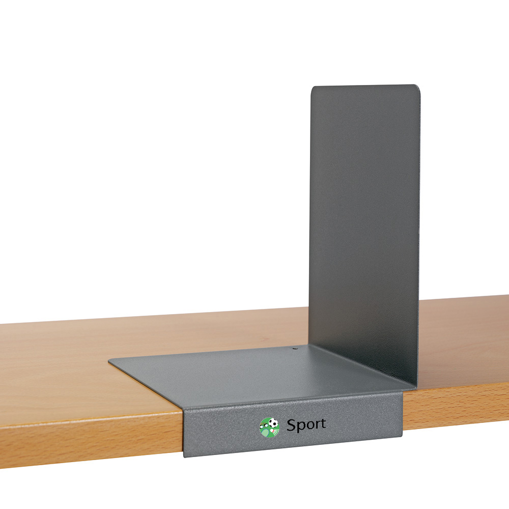 Kanten, som holder bogstøtten på plads på hylden, kan med fordel anvendes til skiltning.