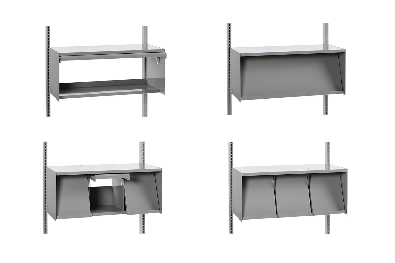Dette kan gøres med forskellige typer hylder eller tilhørende elementer med forskellige funktioner, som derved skaber et helt unikt reolsystem.