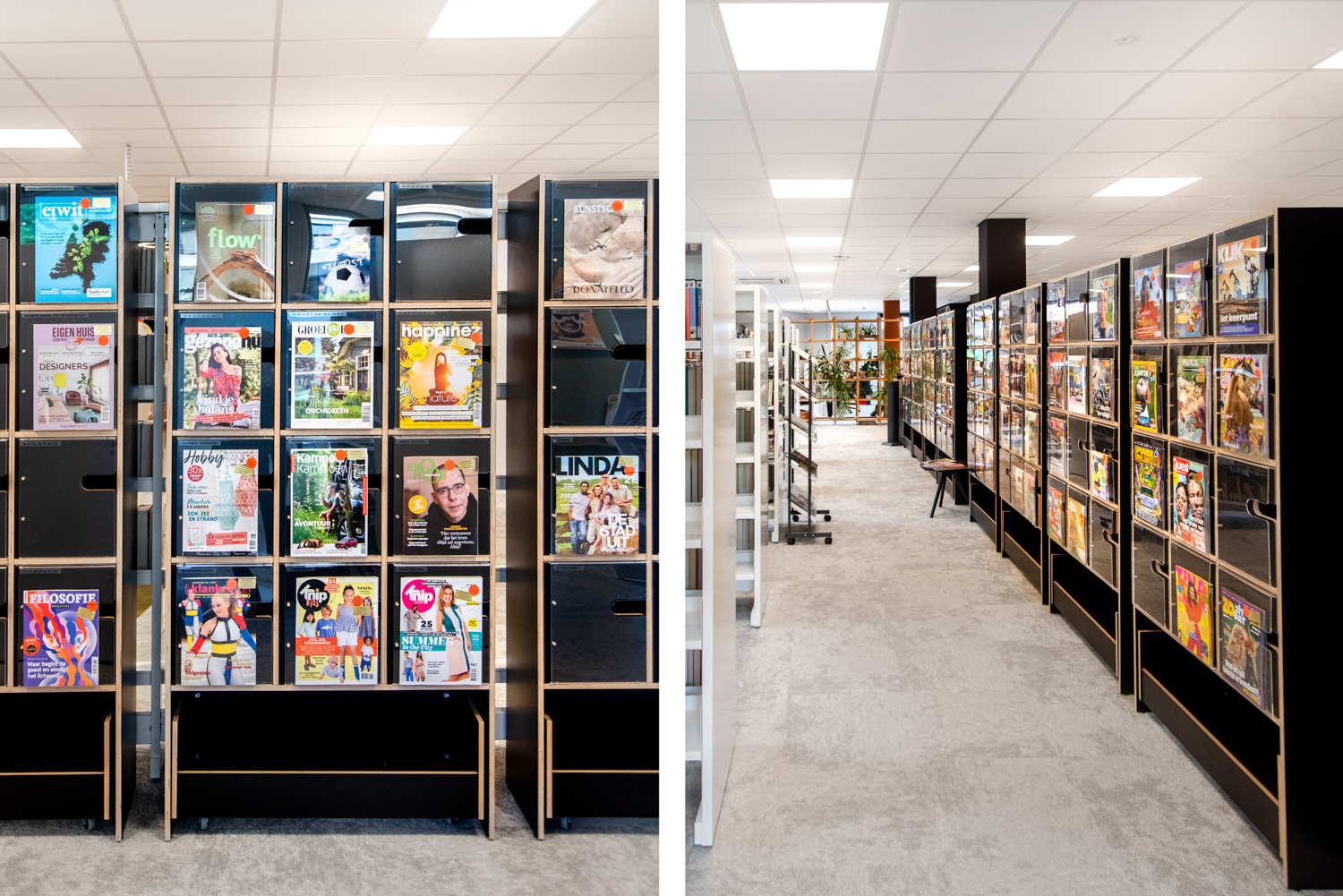 Levers med gummimåtte, der holder medierne oprejst og forhindrer dem i at glide, og plads til stående magasiner i A4 format.