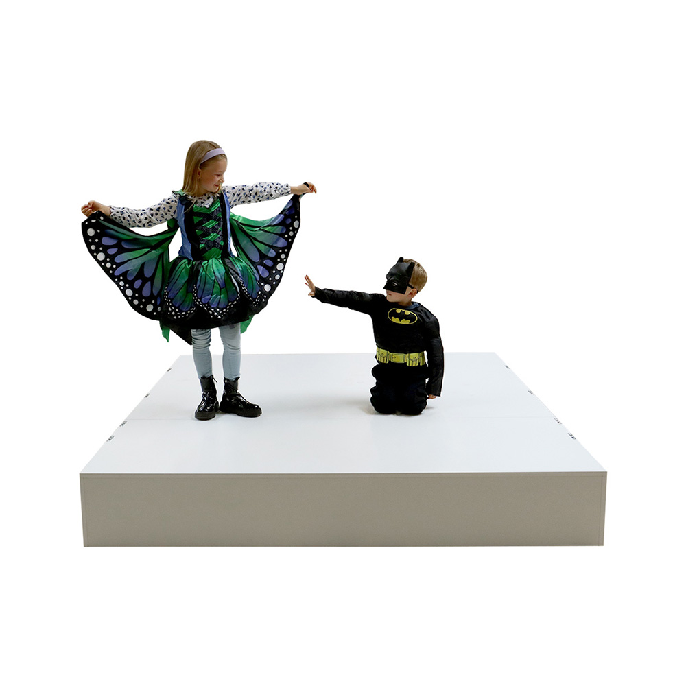 Siddepodiet og scenen har en stærk og robust konstruktion og kan anvendes i alle offentlige biblioteker samt kultur- og undervisningsinstitutioner til børn og voksne i alle aldre.