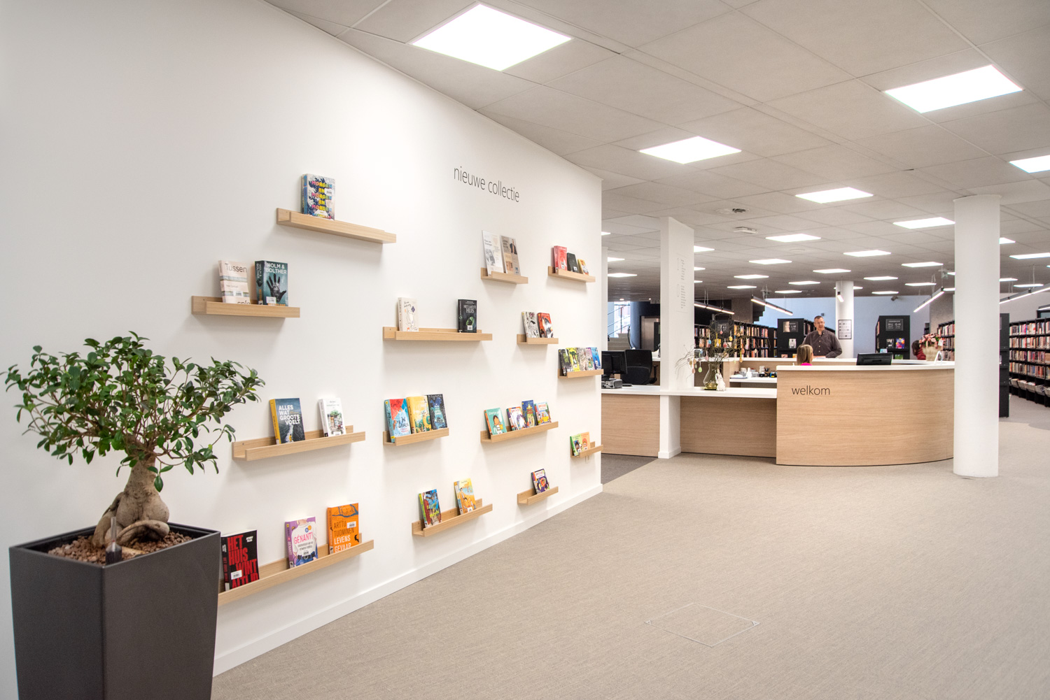 Udstillingshylde med frontkant. God til udstilling af forskellige medier.